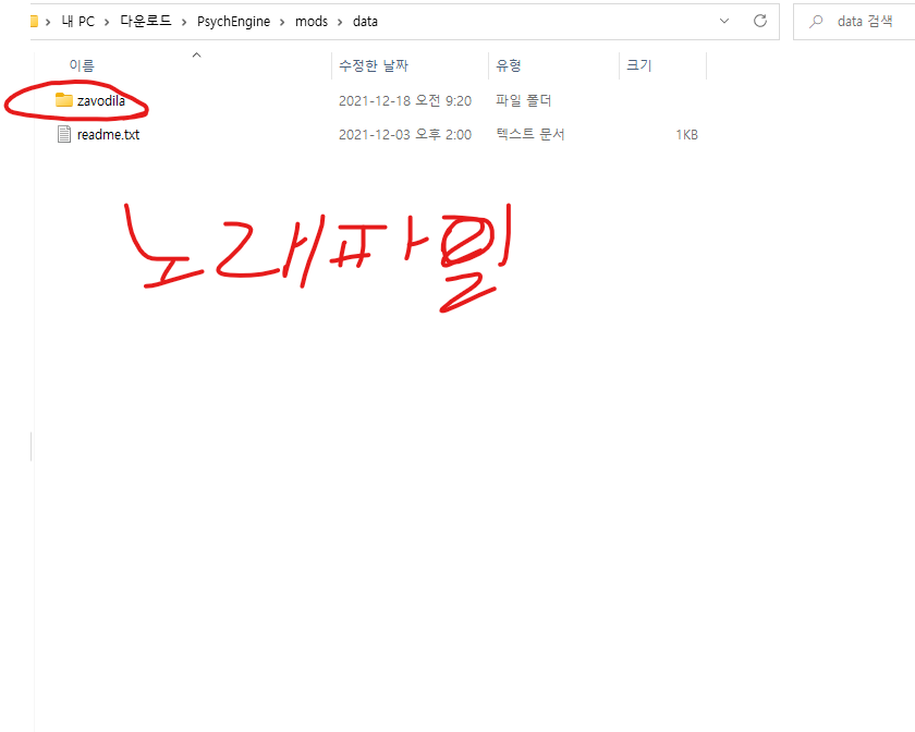 이제 이것도 아까와 같이 PsychEngine 풀더로 가서 mods 풀더> songs 폴더에 넣어줄 겁니다.